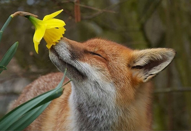 수선화 향기 맡는 여우